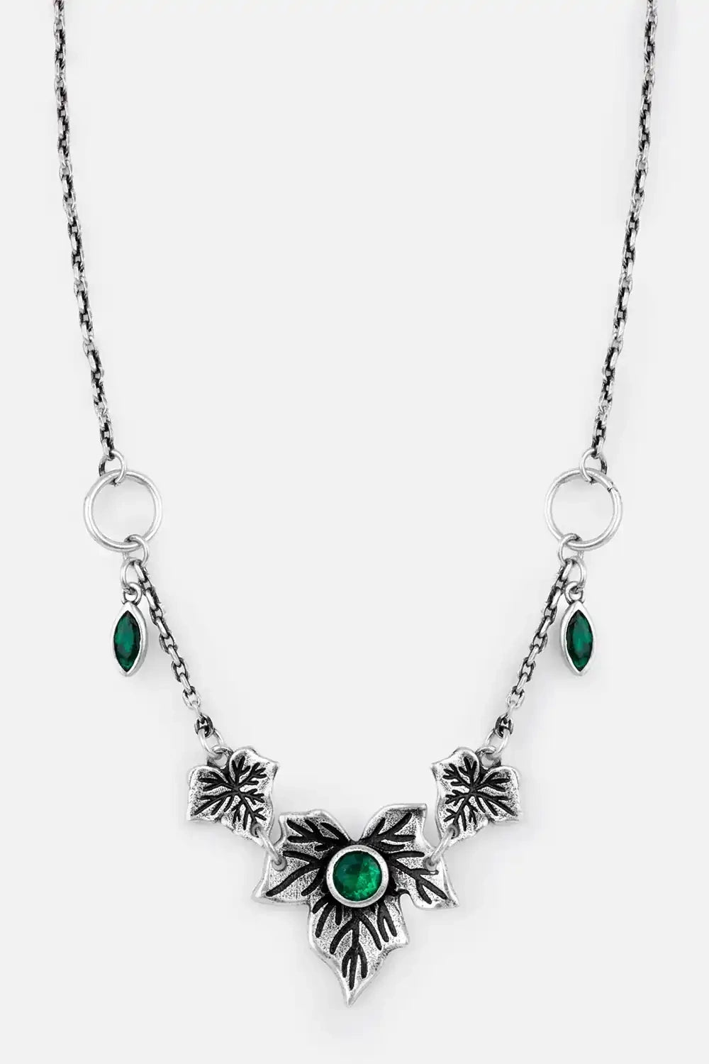 ✦ Central pendant: large ivy leaf with detailed sculpting and green crystal