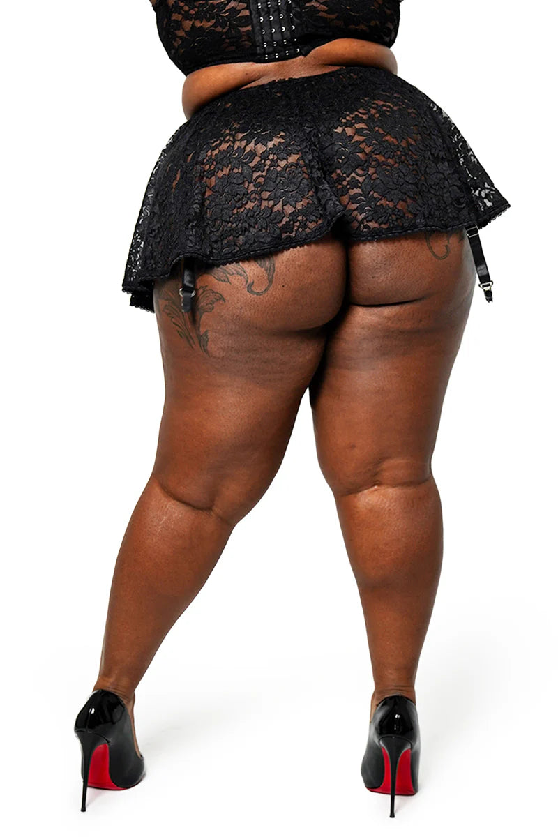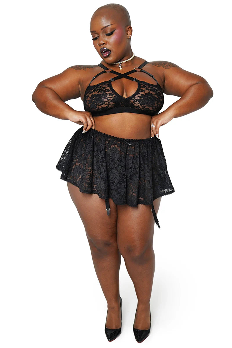 The Lenore Garter Skirt features a gathered micro mini cut, 4 adjustable garter straps, and a romantic picot trim for the dreamiest vibe. Pair with our other Lenore styles to build your perfect lingerie set.