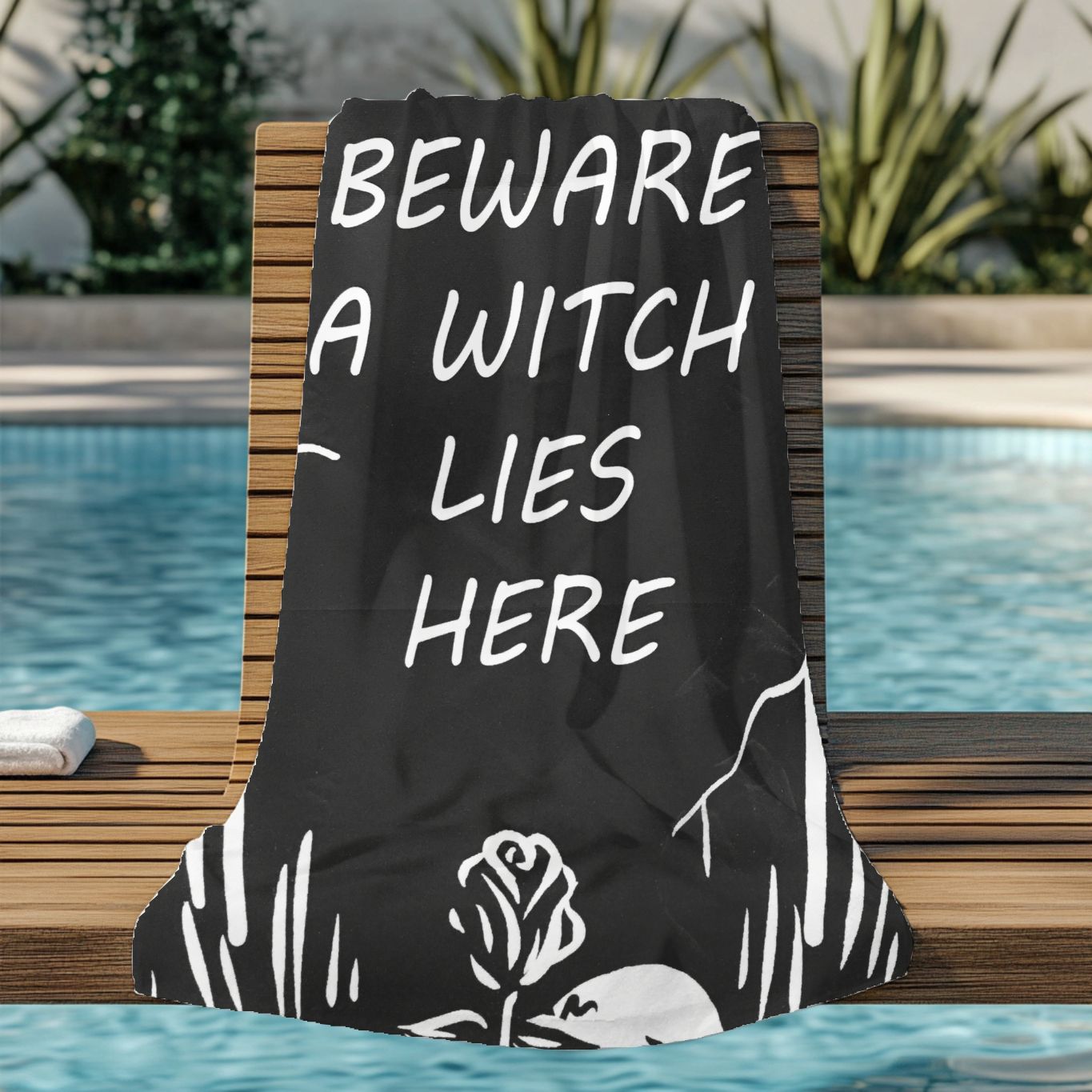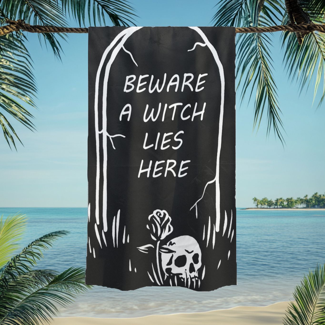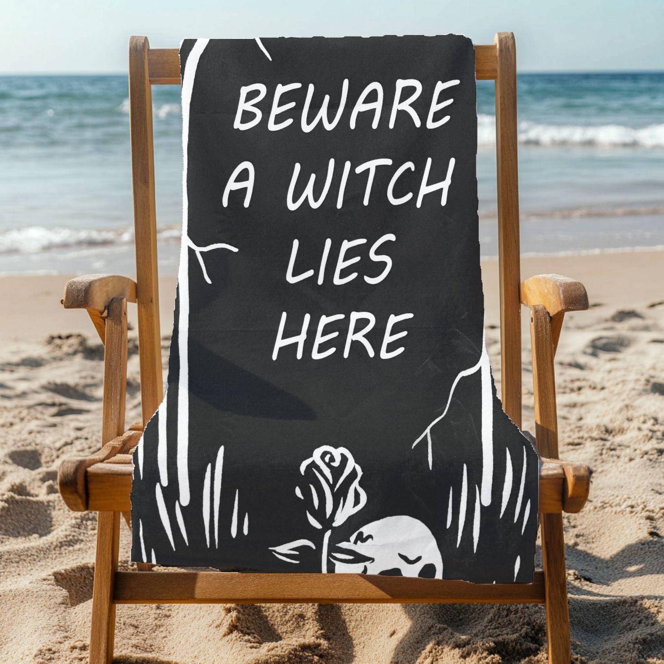 Gothic Beach Towel - A Witch Lies Here - Polyester Gothic Towel
