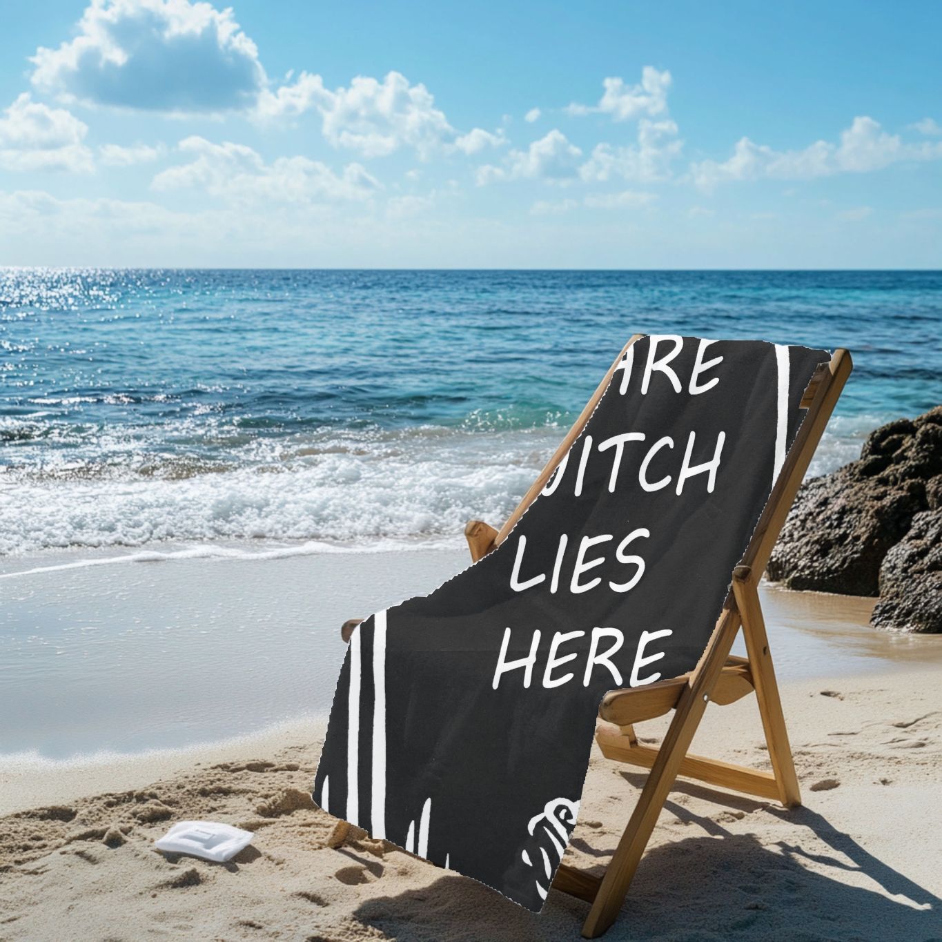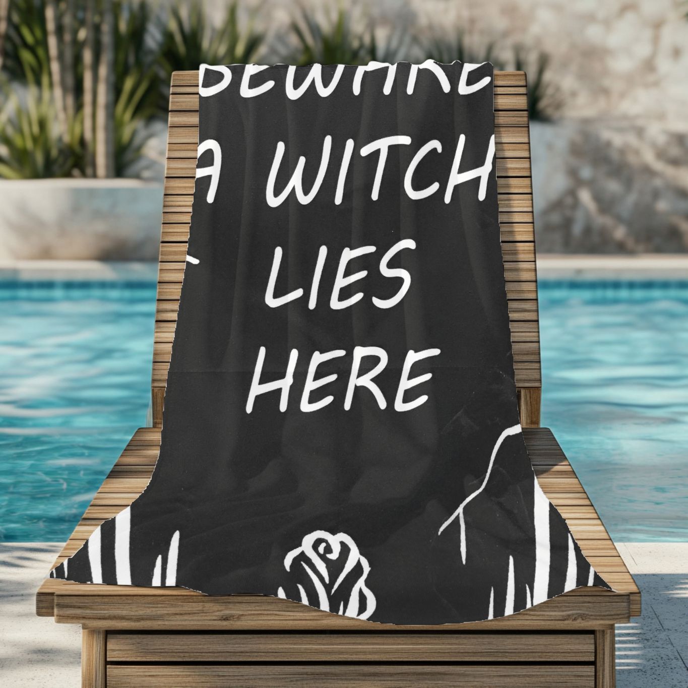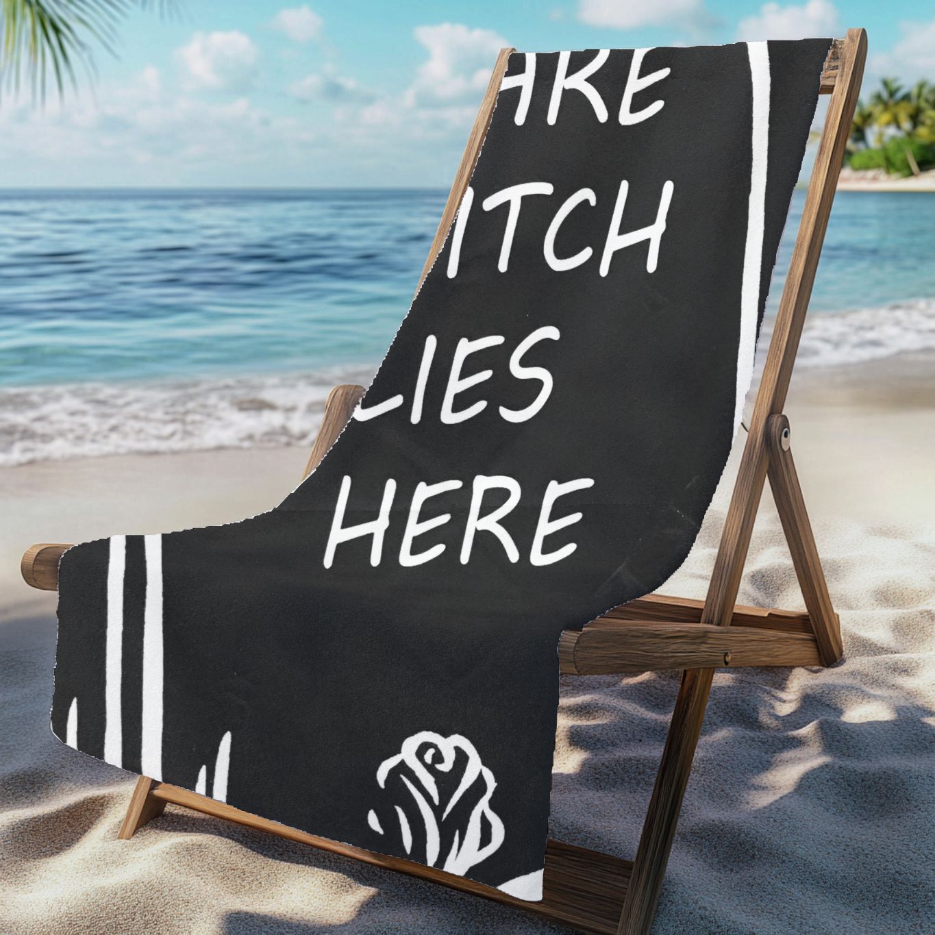 Gothic Beach Towel - A Witch Lies Here - Polyester Gothic Towel