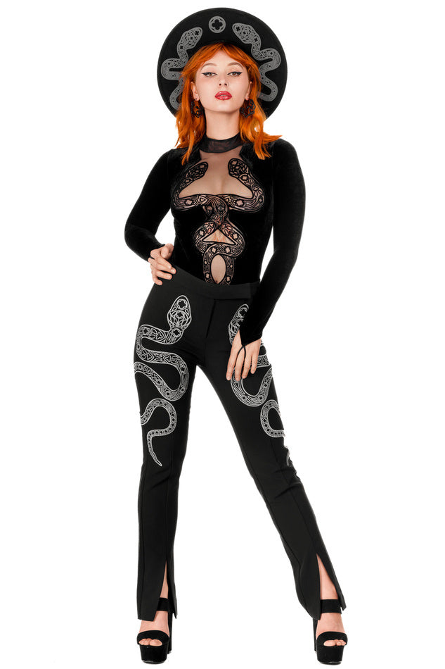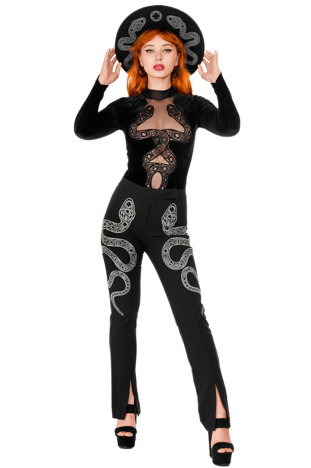 Restyle - Cathedral Snake - Embroidered High Waisted Trousers
