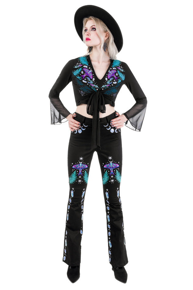 ⋆ Detailed embroidery, featuring magical moths, fern leaves, lavender flowers, crystals, and stars - all in bright, eye-catching colors