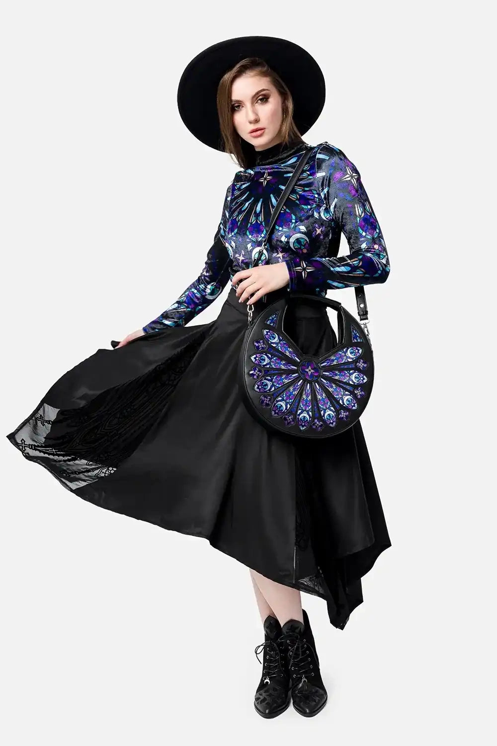 Restyle - Sacred Rose - Gothic Handbag with Stained Glass Effect